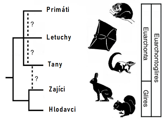 Patřila do širší skupiny savců, nazvaná pro toto období Euarchontoglires, neboli supraprimáti. Bude to poměrně "skromná" skupinka, ze které kromě nás primátů budou ještě letuchy a tany, a ve druhé větvi ještě hlodavci a taky zajíci. Možná se ptáte, co má společného člověk, veverka a nějaká letucha, ale tenkrát byla ta jejich tělíčka opravdu hodně podobná, no a letucha měla navíc mezi nožičkami blánu.