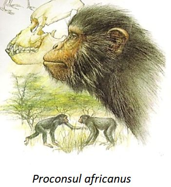 A pak již přišel Proconsul, nejčastěji zmiňovaný skutečný prapředek všech hominoidů. Jeho kostra již k tomu dává základní předpoklad, ale má také ohebnější klouby, silnější úchop, žádný ocas, mozek na úrovni moderních úzkonosých opic a také delší životní cyklus.
