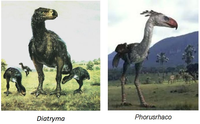 Ale asi největší a nejdravější byl Phorusrhacos. Ten sice mohl dosahovat výšky třeba jen 0,6 metru, ale stejně tak až 3,5 metru a vážil až několik stovek kilogramů. U nás se "proslavil" zejména díky Zemanově filmu Cesta do pravěku, kde tento děsivý dravec jednu chvíli pronásleduje hlavní hrdiny. Samozřejmě se živil námi savci, ale naštěstí ne u nás, protože oproti onomu slavnému filmu, žil pouze v jižní Americe