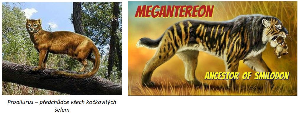 Avšak největší "kočkou" všech dob byl šavlozubý postrach všeho živého, Smilodon, s váhou až 400 kg. U nás je známý jako šavlozubý tygr. Ten však žil až později, ale nyní – někdy koncem třetihor, se objevil jeho předchůdce – Megantereon. Podobal se jaguárovi a vážil zatím "jen" 60 kg.