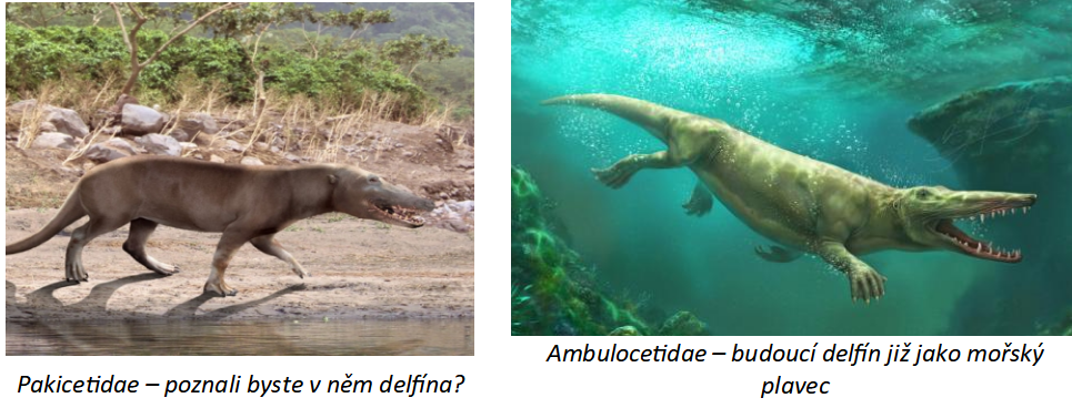 Postupně se podél řek dostával k mořským mělčinám a jeho další vývojový druh, Ambulocetidae, už byla taková zvláštní trojkombinace. Pořád to byl suchozemec, pil sladkou vodu z řek a jezer, ale živil se mořskými živočichy. A za nimi se pouštěl do oceánů, přičemž nohy používal jako pádla. Nakonec v tom oceánu již zůstal.
