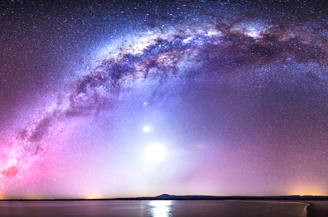 Na obloze se tedy Mléčná dráha jeví jako takový pás, který pokud je kompletní, má tvar oblouku. Jako pás ho vidíme proto, že ta naše Galaxie je plochý disk a my se do něj díváme z vnitřku. Vidíme však jen část té Mléčné dráhy, a to konkrétně dvě jeho ramena. Rameno Střelce a rameno Orionu. A právě v tom Orionu leží naše Slunce.