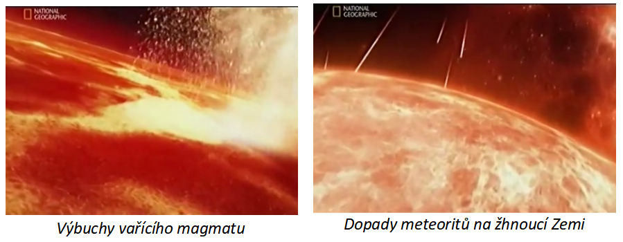 Naše Země se do dnešní velikosti dotvořila asi před 4,5 miliardami let. Ve stavu svého zrodu to byla žhavá koule plná vařícího magmatu s teplotou asi 1300oC na povrchu. Ještě stále na ni občas dopadaly různé meteority a úlomky ze zbytků různých zaniklých planet, ale jak se prostor okolo nás pomalu vyčišťoval, byly jejich dopady stále řidší. Povrch Země začal pomalu chládnout. (použitý zdroj - animovaný cyklus National Geographic - "Tajemství vesmíru")