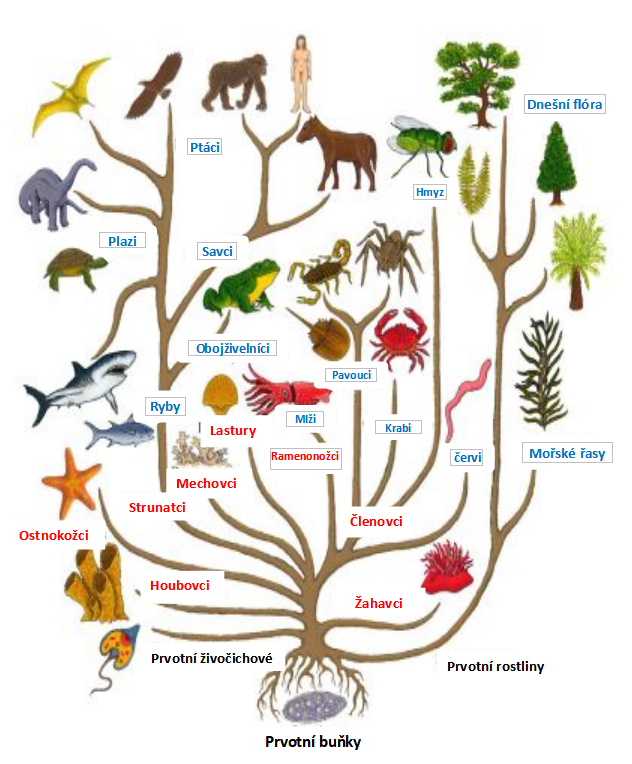 A pro představu, co jednou tady z těch příšerek bude a jak se to bude vyvíjet, je tady jednoduchý diagram vývoje života na Zemi.