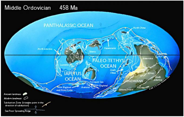 Dostáváme se do ordoviku, dalšího z období prvohor. Je to období před 485 až 440 miliony let. Vlivem pohybu zemských desek dochází k prvnímu většímu vrásnění na kontinentech. Zejména na kontinentu Gondwana, které je v té době největším územím. Její pobřeží je značně neklidné a tam se také nyní nachází naše republika. Právě v této době se tam poprvé objevila také naše první pohoří – Krkonoše, Jizerské a Krušné hory, nebo též Barrandovské skály u Prahy. Nebyly to však žádné velehory. Spíš jen takové skalnaté kopce a i ty se v průběhu dalšího času vlivem eroze rozpadávaly.