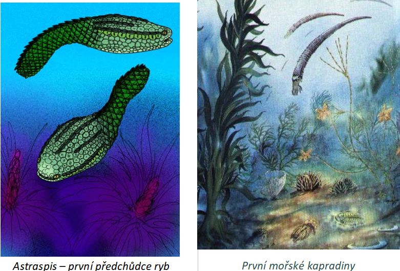Pokračuje další vývoj obratlovců. Objevují se již první paryby, zatím ještě bezčelistí. Například Astraspis. Ten měl na těle jako ochranu jakési kostnaté výrůstky a od toho získal své jméno. V překladu to je něco jako hvězdný štít.