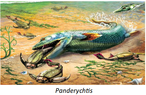 A zcela určitě je to Panderychtis, jako další vývojová řada. Objevil se asi před 380 miliony let a již nesl znaky budoucích čtyřnožců - tetrapodů. Pažní kosti, pánev a na ploutvích už měl zárodky prstů. A taky měl na hlavě otvor na dýchání, ze kterého se později vyklubaly uši.