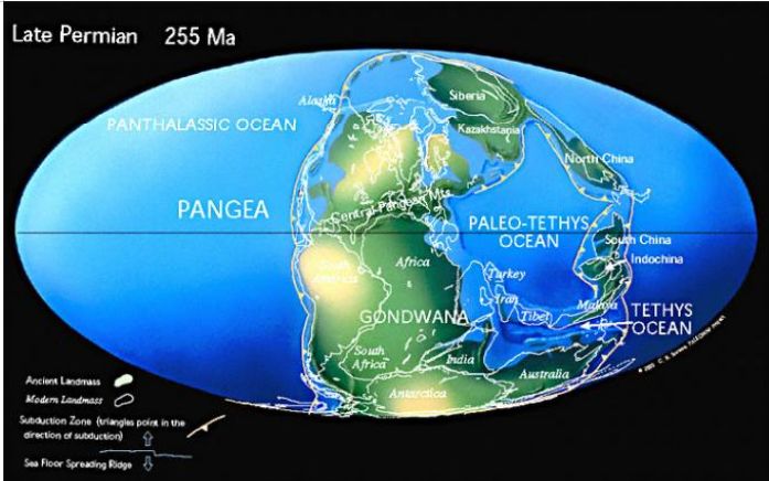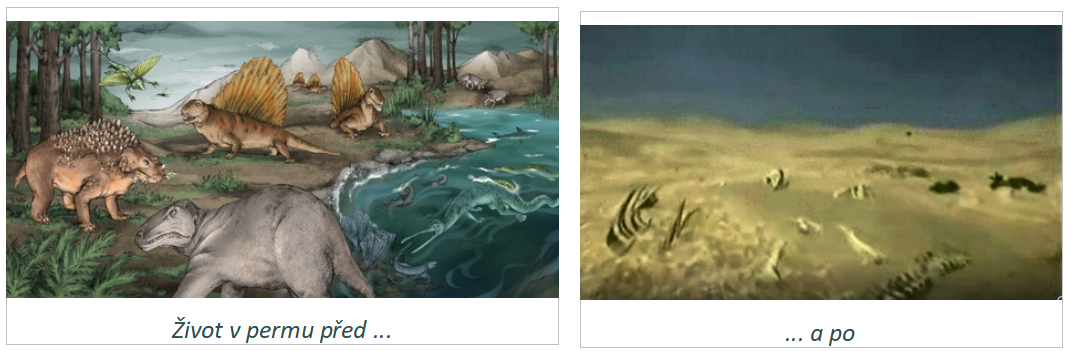 Vcelku poklidný život v permu ukončila na jeho samém konci obrovská katastrofa, která silně ovlivnila další vývoj. Bylo to asi před 252 miliony let. Na Sibiři, která tehdy ležela někde na místě dnešní Skandinávie, došlo k silné vulkanické činnosti.