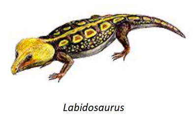 Jeden z jejich prvních vývojových druhů byl tento Labidosaurus. Tvoreček s placatou, trojúhelníkovou hlavou.